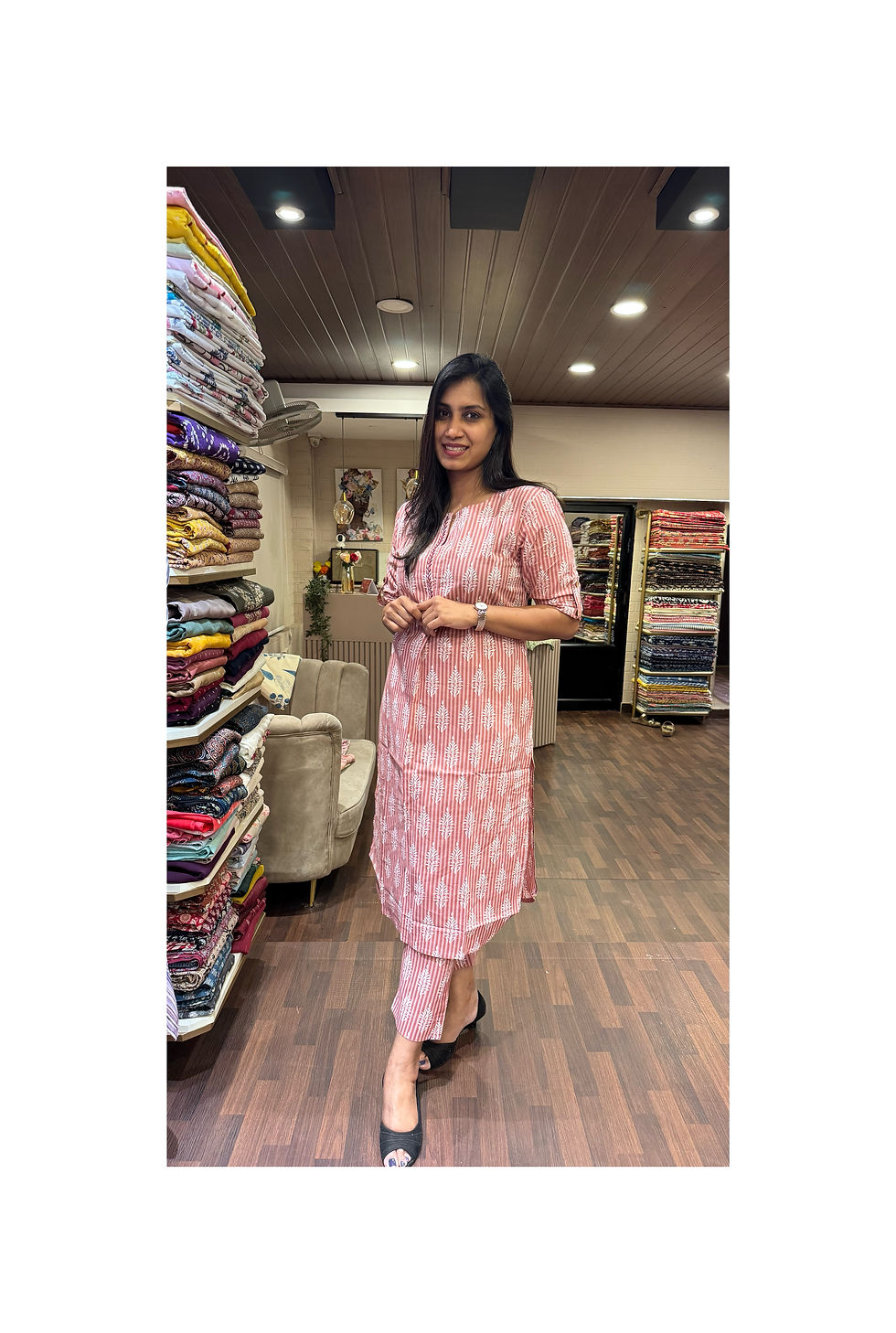 Mustard yellow and green cordset in printed Ajrakh cotton